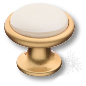 Ручка кнопка 3008-61-L PEARL, материал Замак, цвет Перламутр, отделка Золото Керамика, 30*d=35/22 мм